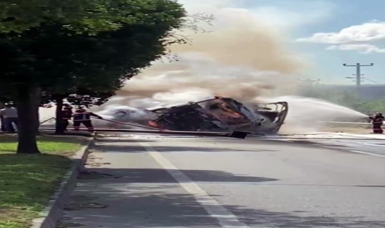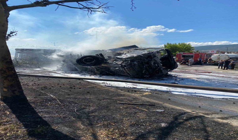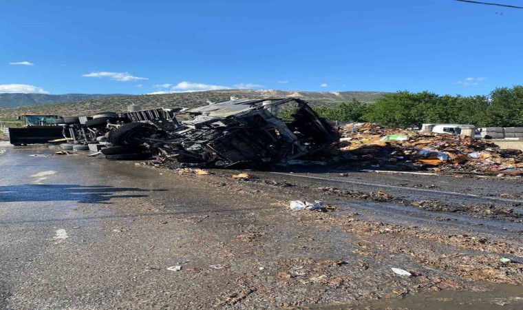 Adrese ulaşan itfaiye ekiplerince kontrol altına alınarak söndürülen yangında, tırdan geriye hurda yığını kaldı. Bölgede bir süre aksayan trafik, aracın yoldan kaldırılması ile normal seyrine döndü. Kazaya ilişkin inceleme başlatıldı.