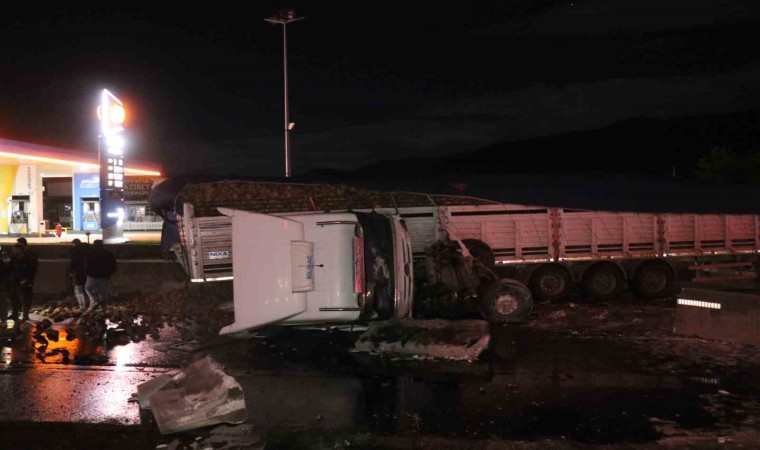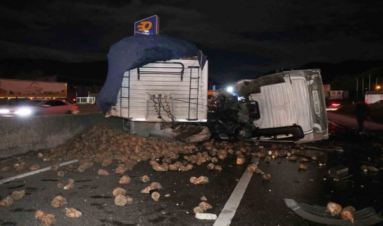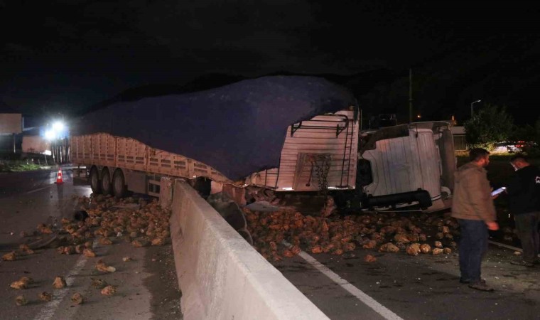 Sakarya’nın Arifiye ilçesi D-650 kara yolunda Afyon’dan şeker pancarı getiren tır, tekerinin patlaması neticesinde kontrolden çıkarak karşı şeride geçti. Meydana gelen kazada tır hurdaya dönerken sürücüsü yaralandı.