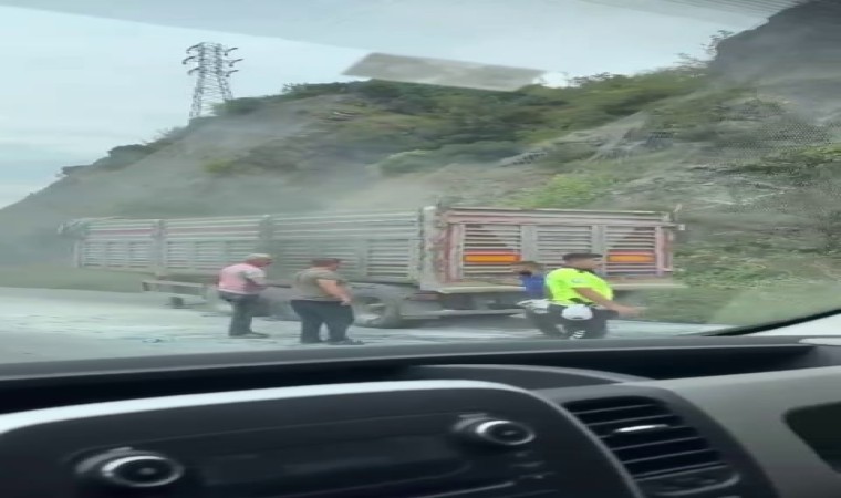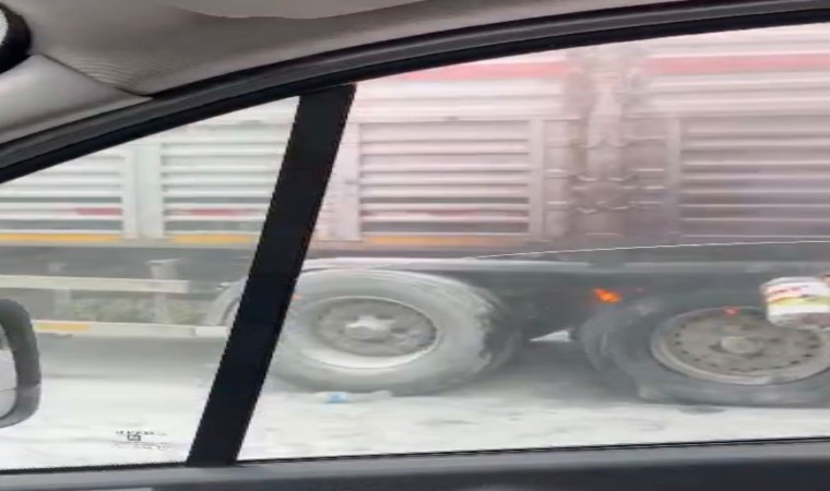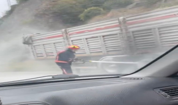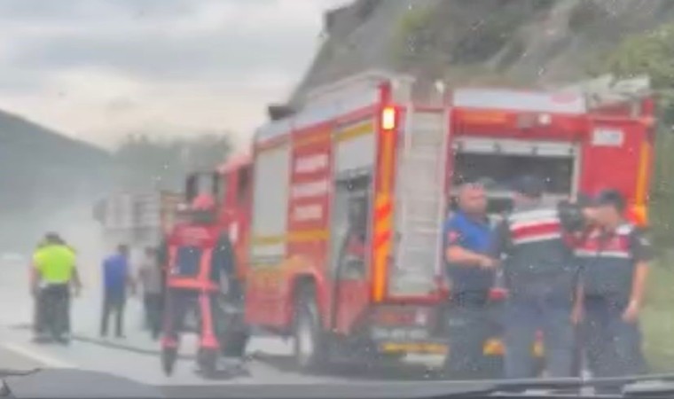 Sakarya’nın Geyve ilçesi D-650 karayolunda tırın dorsesinin lastikleri alev aldı. İtfaiye ekiplerince yangın söndürülürken karayolunda uzun araç kuyrukları oluştu.