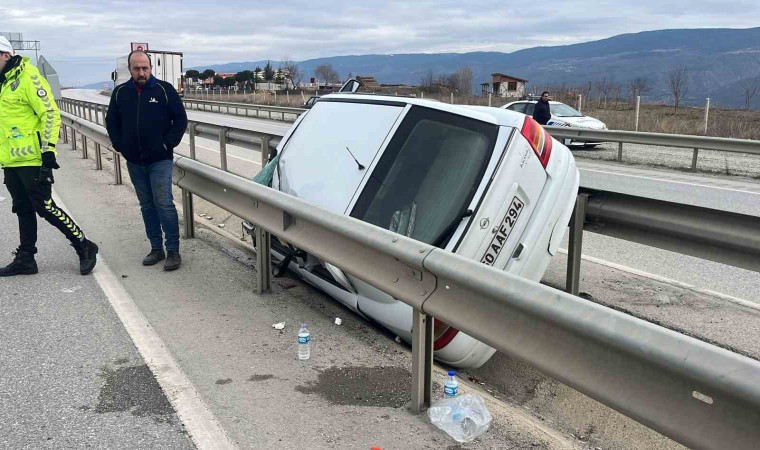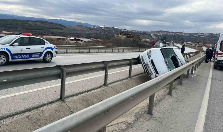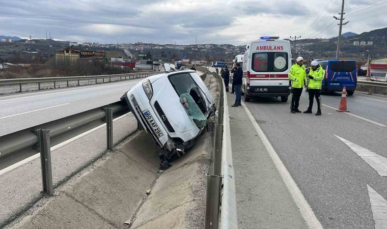Kastamonu’nun Tosya ilçesi D100 karayolunda iki bariyerin arasına düşerek asılı kalan otomobildeki 2 kişi yaralandı.