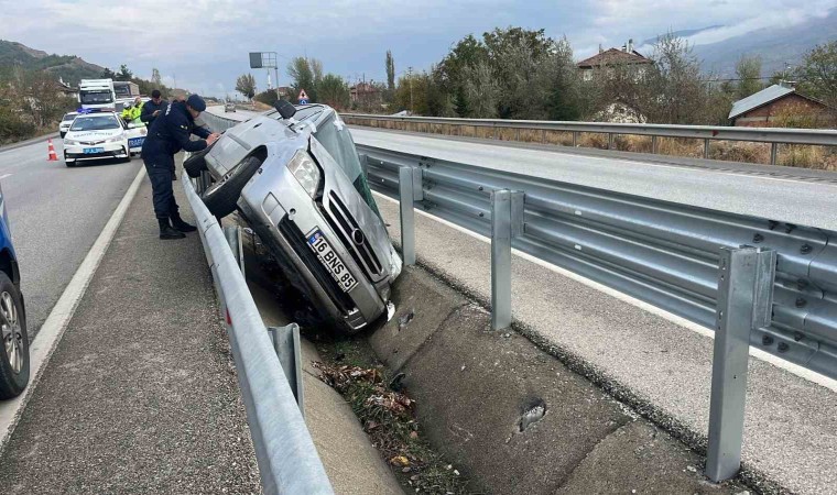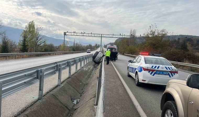 Kastamonu’nun Tosya ilçesi D100 karayolunda bariyerlere çarparak orta refüjdeki kanala düşen otomobilin sürücüsü yaralandı.