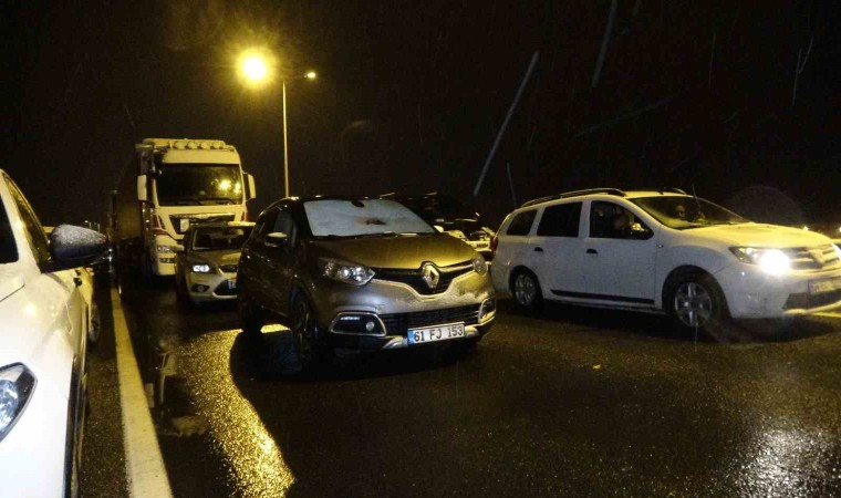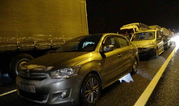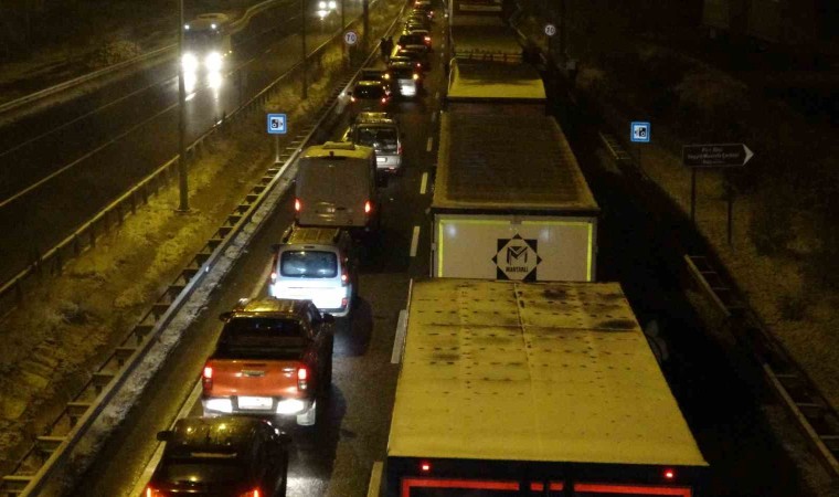 3 saattir yolda beklediğini ifade eden tır şoförü Mustafa Akar, “Kocaeli - Trabzon hattında çalışıyorum. Bolu tüneli kapalıymış, bu yüzden 3 saattir burada bekliyoruz” dedi.