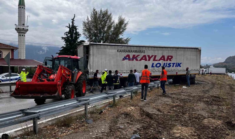 Öte yandan, Çaykapı mevkiinde meydana gelen farklı kazada da Samsun istikametinde seyir haline olan A.K. idaresindeki 46 ADY 801 plakalı tır da kontrolden çıkarak makasladı. Bariyerlere çarpan tır refüje çıkarak durabildi. Kazada tır sürücüsü yara almadan kurtuldu.