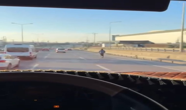 Görüntüleri çeken bir başka sürücü ise 80 kilometre hızla gitmesine rağmen scootera yetişemiyor.