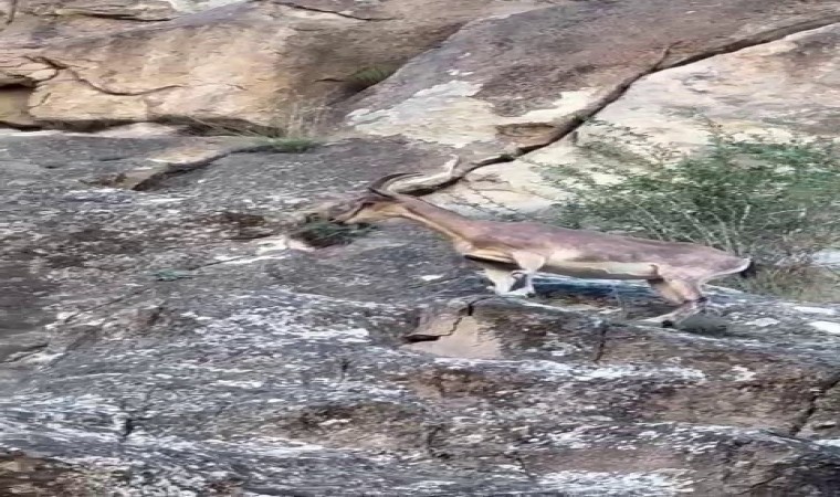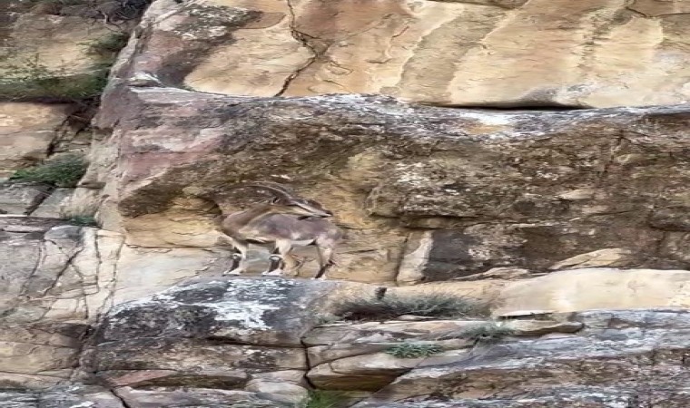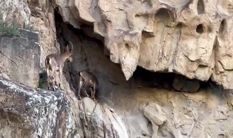 Erzurum’un Tortum ve Uzundere ilçelerinde kayaların üzerinde dolaşan yaban keçileri kameralara yansıdı.