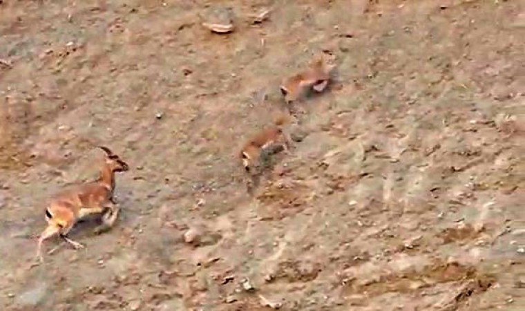 Hakkari’de dağ keçisi yavrularıyla birlikte görüntülendi.