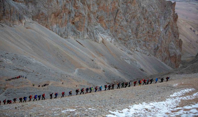 Sokullupınar Kamp Alanı’nda kamp kuran dağcılar, sabah saat 04.00’te ellerinde Türk bayrakları ile 3 bin 723 rakımlı Emler zirvesine tırmanışa başladı.