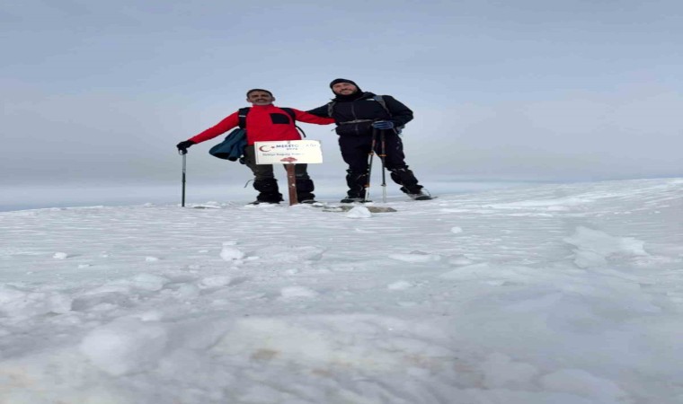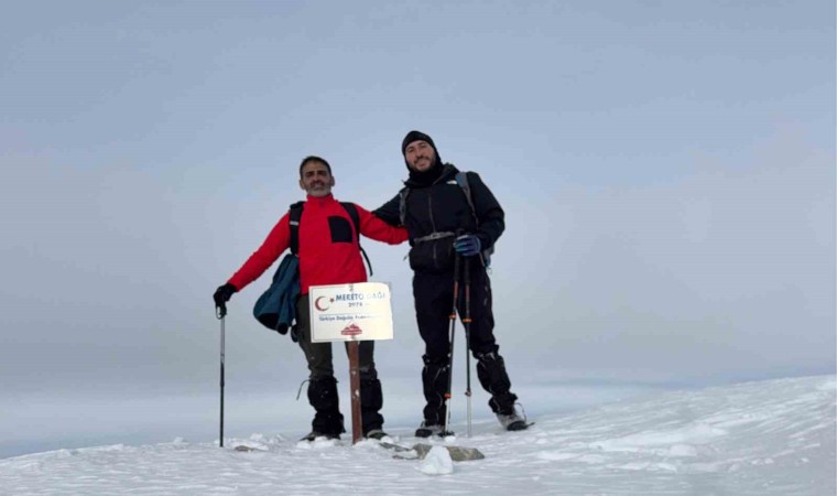 Dağcılar 2 bin 978 rakımlı Mereto Dağı’na çıkmak için zorlu yolculuğa koyuldu. Dağcılar yer yer 1 metreyi bulan karda 6 saatlik zorlu tırmanışın ardından zirveye ulaşarak hatıra fotoğrafı ve video çekti.