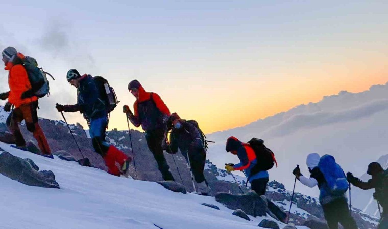 Birçok dinde kutsal sayılan, terörden arındırıldıktan sonra tırmanışa açılan ve yaz-kış dağcı gruplarını ağırlayan Ağrı Dağı, bu defa yabancı turistlerden oluşan bir grubu ağırladı. Tırmanış rehberi olan Erol Toprak eşliğinde İlk gün 3 bin 200’e tırmanan dağcılar, burada konakladıktan sonra 4 bin 200 rakıma çıkarak mola verdi. Gece yeniden tırmanışa geçen dağcılar, sis ve fırtına eşliğinde 6 saat sonra Ağrı Dağı’nın zirvesine çıkabildi. Büyük bir heyecan yaşayan dağcılar, dört mevsim boyunca erimeyen karın üzerinde birbirlerine sarılıp dans etti.