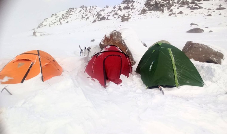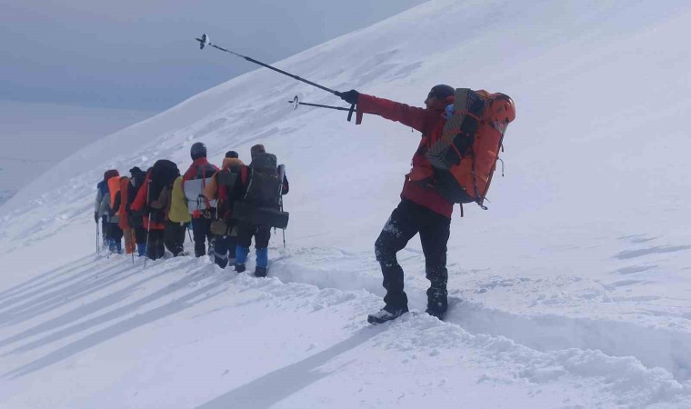 Kahramanmaraş merkezli 6 Şubat’ta meydana gelen depremlerde hayatını kaybedenler anısına ve zulme uğrayan Filistin halkı için 4 bin 58 rakımlı Süphan Dağı’nda zirve tırmanışına geçen Vadi Doğa Sporları Kulübü üyeleri, yoğun kar ve tipi nedeniyle geri dönmek zorunda kaldı.