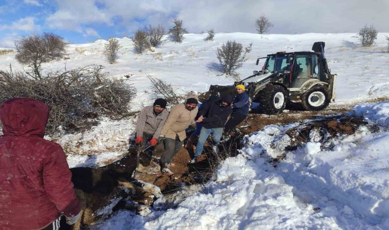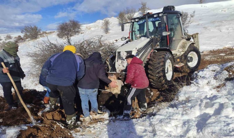 Ankara’da etkili olan kar yağışı Akyurt ilçesinde büyükbaş hayvanların mahsur kalmasına sebep oldu. Akyurt Belediyesi ekiplerinin çalışmaları sonucu kurtarıldı.