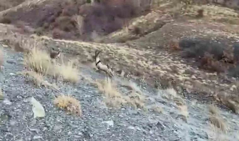 Sivas’ta yaşayan bir vatandaş geçtiğimiz günlerde doğada gezindiği sırada dağların usta tırmanıcıları olarak bilinen dağ keçileriyle karşılaştı. Oldukça yakınında olan dağ keçilerini görür görmez cep telefonuna sarılan hayvan sever vatandaş, telefonun kamerasını açarak dağ keçilerinin o anlarını kayda aldı. Bir süre dağda gezinen keçiler daha sonra gözden kayboldu.