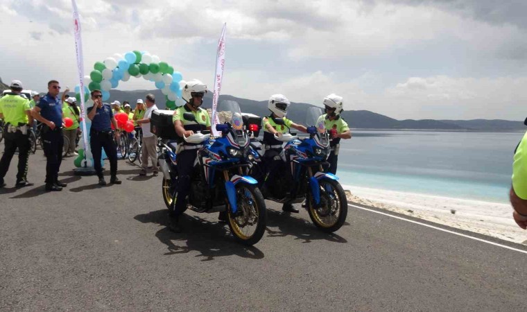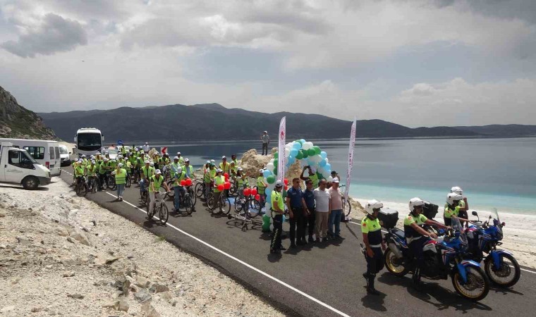 Burdur’da Çevre Haftası etkinlikleri çerçevesinde Çevre Şehircilik ve İklim Değişikliği İl Müdürlüğü personelleri ve öğrenciler Salda Gölü kenarındaki bisiklet yolunda bisiklet sürdüler. Sürüş sonrası öğrencilere jandarma tarafından trafik eğitimi verildi.