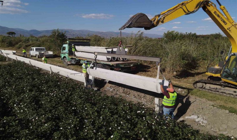 Aydın’da çiftçiler için önemli olan sulama kanallarında yenileme çalışmaları devam ediyor. Önemli tarım kentlerinde olan Aydın’da sulama tesislerine yönelik çalışmalar da aralıksız devam ederken, Yenipazar - Dalama Sulaması Yenileme çalışmaları bölge üreticisine umut oluyor. Çalışmaların tamamlanması ile birlikte sulama kanalı, bölgede bulunan 22 bin dekar araziye can suyu olacak. Çalışmaların hız kesmeden devam ettiği su kanalı ile ayrıca bölgedeki ürün deseninin de genişlemesi beklenirken, çalışmalarda yüzde 76 fiziki gerçekleşme sağlandı. 170 bin metre yapılacak olan kanalet yenileme çalışmasının 103 bin metresi tamamlanırken, imalat ve montaj çalışmaları da devam ediyor.