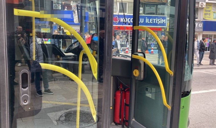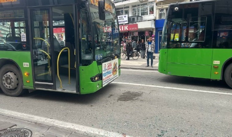 Olayda belediye otobüsünün yan camları kırılırken, kazayla ilgili inceleme başlatıldı.