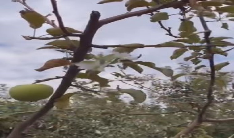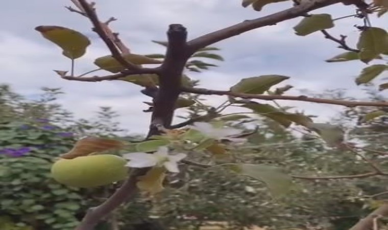 Elazığ’da dallarında hala meyvesi olan elma ağacı tekrar çiçek açtı.