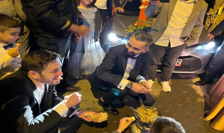 Bursa’da Mehmet Alıç (33) ve Elif Olgun (33) çifti hayatlarını birleştirdi. Düğün sonrası kolları sıvayan arkadaş grubu, merkez Yıldırım ilçesi Arabayatağı Mahallesi’nde bulunan evin önüne giderek damat olan arkadaşları Mehmet Alıç’ı beklemeye başladı. Düğün bitimi eşiyle beraber evinin önüne gelen Alıç, karşısında arkadaşlarını görünce şaşırdı. Gelin arabasına halat bağlayan sağdıçlar, halatı damadın eline tutuşturarak aracı çekmesini istedi. Sağdıçlarını kırmayan damat, zorlansa da aracı güçlükle çekti. Daha sonra önüne gelen tüp ve tavayla beraber yumurta pişiren damat, yumurtayı önce kendisi yedi. Sağdıçlarını da unutmayan Alıç, yaptığı yumurtadan arkadaşlarına da ikram etti. Mehmet ve Elif Alıç çifti, yapılan çeşitli işkenceler sonrası dualar ve alkışlar eşliğinde evlerine girdi.