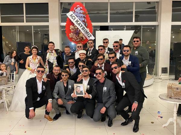 Mustafakemalpaşa ilçesinde Orman işletme Müdürlüğü'nde çalışan Barış Uslu ile 2,5 yıldır birlikte olduğu Tuğçe Uslu, geçen hafta yapılan düğünle hayatlarını birleştirdi. İlçedeki bir salonda gerçekleştirilen düğünde, gelin ile damat takı sırasındayken, hoparlörden önce hüzünlü bir müzik yankılandı. Ardından da damadın arkadaşları, üzerinde ‘Acı kaybımız’ yazılı çelenk ve damadın fotoğrafının olduğu bir çerçeve ile salona girdi. İmam gibi cübbe giyen sağdıç, en önde, siyah kıyafetler giyip güneş gözlüğü takan diğer sağdıçlar da arka arkaya sıralanarak, davetlilerin şaşkın bakışları arasında gelin ve damadın yanına geldi. İmam gibi giyinen genç eline mikrofonu alarak, cenazedeymiş gibi, damadın sağdıçlarına üç kez, “Barış Uslu'yu bekarlığında nasıl bilirdiniz?” diye sordu. ‘İyi biliriz’ yanıtını alınca bu kez üç kez, “Altınlarınızı helal ediyor musunuz?” diye sordu. ‘Helal ediyoruz’ yanıtını veren sağdıçlar, çifte mutluluklar dileyip, düğün fotoğrafı çektirdi. O anlar davetliler tarafından cep telefonu kamerasıyla görüntülendi.