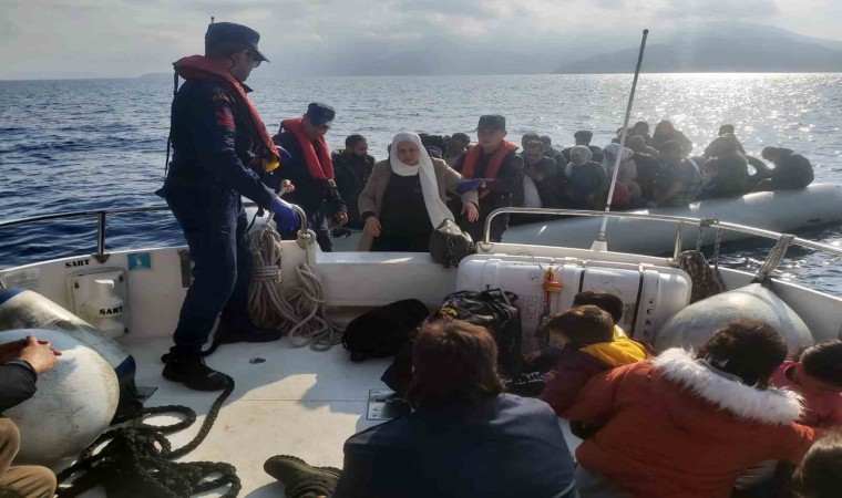 Öğle saatlerinde ise içinde düzensiz göçmenlerin bulunduğu lastik botun arıza yapması sonrası düzensiz göçmenler yardım çağrısında bulundu. Bölgeye gönderilen sahil güvenlik botu can salları içindeki 43 düzensiz göçmen kurtarıldı.
