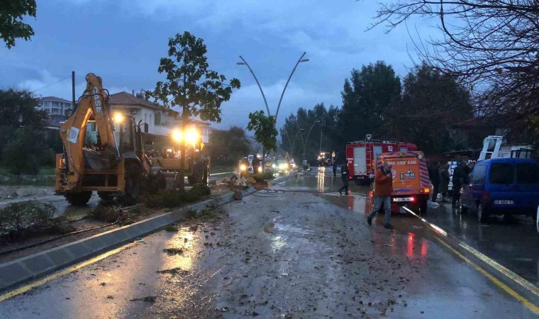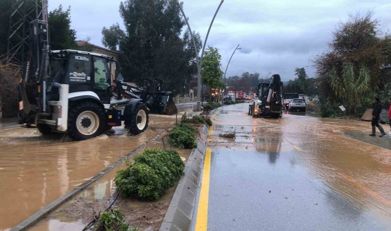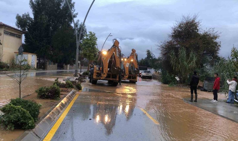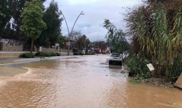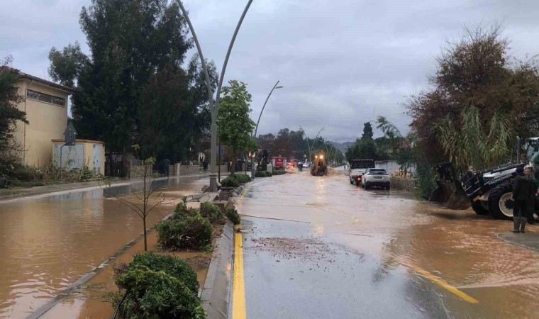 Muğla’nın Datça ilçesinde etkili olan sağanak yağış, hayatı olumsuz etkiledi. Yoğun yağış sebebiyle Reşadiye Mahallesi ile İskele Mahallesi arasındaki karayolunda ise rögar taşkını meydana geldi. Yaşanan taşkın sebebiyle karayolu adeta göle dönerken, yolda kalan araçlar da uzun kuyruklar oluşturdu. İki mahalle arasında bulunan karayolunun trafiğe kapatılmasının ardından, yolun açılması ve rögarların temizlenmesi için ekipler seferber oldu. Çevredeki bazı işyerlerinde de su baskınları yaşandı. Karayolu ve çevredeki işyerlerinde biriken suların tahliye edilmesi için çalışma başlatılırken, ilçe genelinde bazı mahallelerde de su baskınlarının yaşandığı öğrenildi. Bölgede çalışmalar sürüyor.