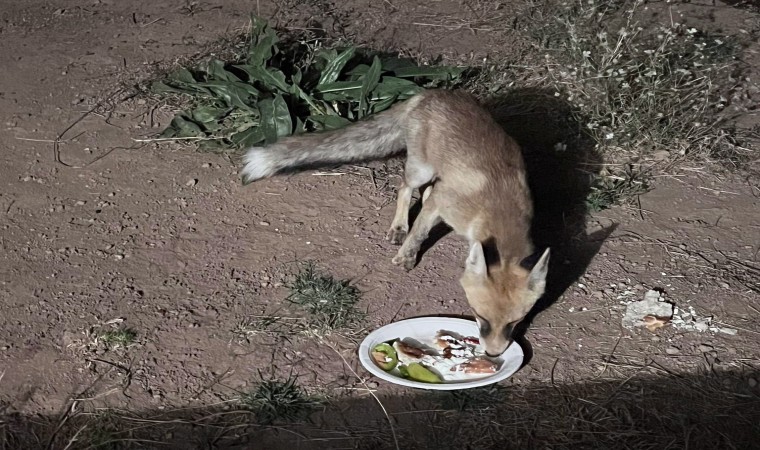 Bitlis’in Ahlat ilçesinde yavru tilki akşamları bağ evinde piknik yapan vatandaşların sofrasına ortak oluyor.