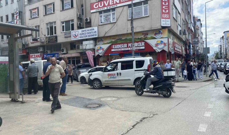 Olay, Liseler Mahallesi Hükümet Caddesi üzerinde meydana geldi. Edinilen bilgiye göre, Ünye İlçe Emniyet Müdürlüğü Trafik Tescil ve Büro Amirliği ekipleri, motosiklet denetimi yaptığı sırada 15 yaşındaki ehliyetsiz A.A.D. isimli sürücüyü durdurdu. Ehliyetsiz ve kasksız olduğu öğrenilen sürücüye ekipler cezai işlem uygulamak istedi. Motosikletin durdurulduğu yerde ehliyetsiz sürücü A.A.D.’nin dedesi Abdullah D. de olaya dahil oldu.