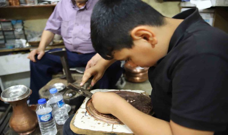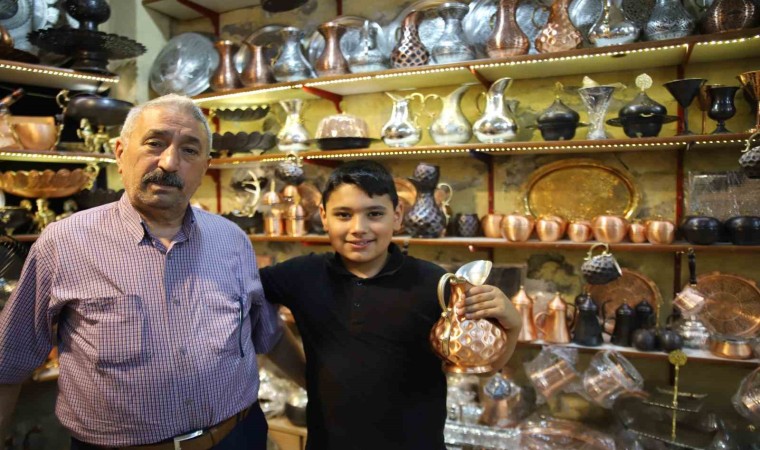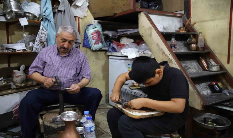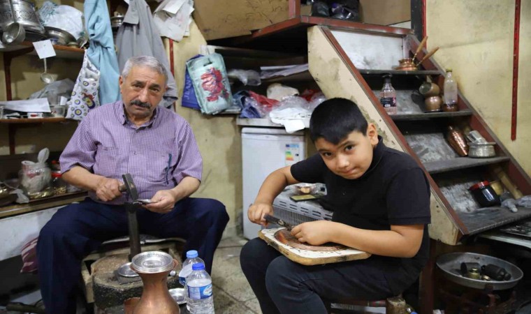 Gaziantep’te yaşayan Sabahattin Cida, 10 yaşındayken öğrendiği ve 60 yıldır yaptığı bakırcılığı, torunu ile yaşatmaya çalışıyor.