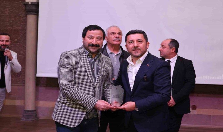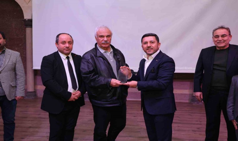 Başkan Rasim Arı, Nevşehirli çocuk oyuncu Ali Kürşat Uzun, Halil Ergün ve Metin Yıldırım ile Film Yönetmeni İhsan Taş’a plaket takdim ederek sanat hayatlarında başarılar diledi.
