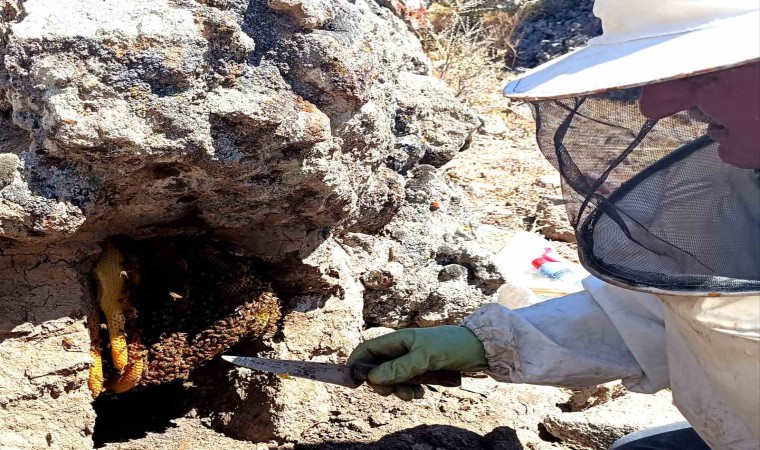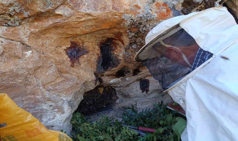Konya’nın Seydişehir ilçesinde dedesinden öğrendiği yöntemlerle arıcılık yapan Şakir Cırık, geçimini arıların kaya kovuklarına yaptığı balı satarak sağlıyor.