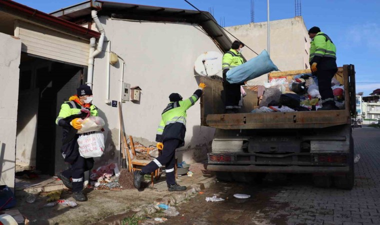 Zabıta personeli eşliğinde yapılan çalışmada zaman zaman eşyalarının atılmasına müdahale eden vatandaşın evinin daha önce 4 kez temizlendiği belirlendi.