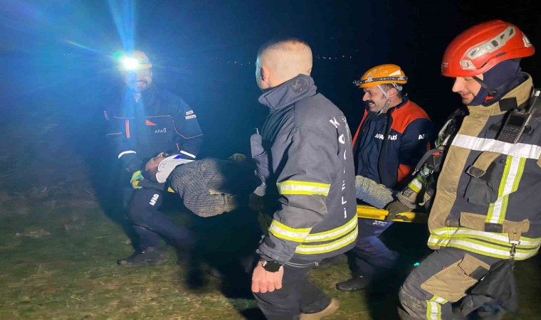 Kısa sürede olay yerine ulaşan ekipler, yaralı Cem D.’yi kurtarmak için operasyon başlattı. Ekiplerin kurtarma operasyonu sırasında yaralı acı içinde inledi. Yaklaşık bir saat süren operasyonun ardından şahıs, bulunduğu yerden kurtarma ekipleri tarafından çıkartılarak sağlık ekiplerine teslim edildi. Olay yerinde ilk müdahalesi yapılan şahıs, Kocaeli Üniversitesi Tıp Fakültesi Hastanesi’ne kaldırıldı. Şahsın sol ayağının hasar gördüğü öğrenildi.