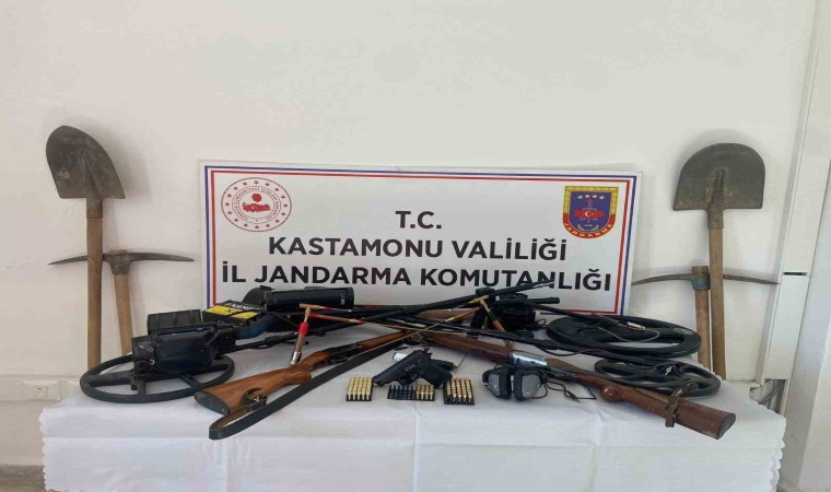 Edinilen bilgiye göre, Kastamonu’nun Seydiler ilçesinde define bulmak isteyen şahısların izinsiz kazı yaptığı bilgisine ulaşan Kastamonu İl Jandarma Komutanlığı ekipleri harekete geçti. Ekipler tarafından düzenlenen operasyonda, A.Ö., S.İ., Y.Ç., S.S. ve H.G. suçüstü yakalandı. Şahısların yakalandığı alanda ve evlerinde yapılan aramalarda 6 adet dedektör, 2 adet kürk, 2 adet boşluk arama çubuğu, 2 adet dedektör kulaklığı, 1 adet kurusıkı tabanca, 2 adet ruhsatsız av tüfeği, 49 adet tabanca fişeği, 70 adet kurusıkı tabanca fişeği ele geçirildi.