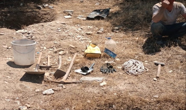 Aydın’ın Kuyucak ilçesinde tarihi eser bulmak için kaçak kazı yapan definecileri suçüstü yakalayan jandarma ekipleri, şüphelileri kazdıkları çukurlardan tek tek çıkardı.
