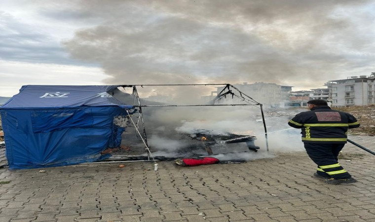 Defnede çadırda çıkan yangın söndürüldü