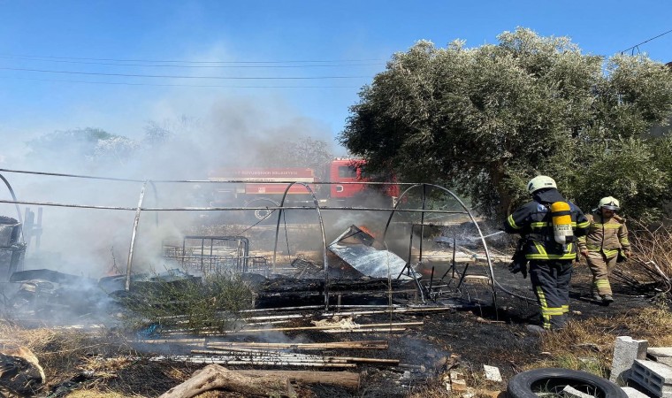 Hatay’da depo olarak kullanılan çadır içindeki eşyalarla birlikte yanarak kullanılmaz hale geldi.