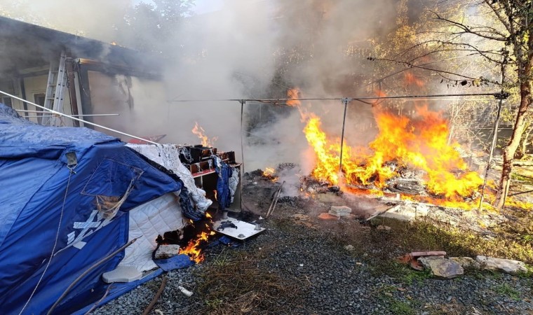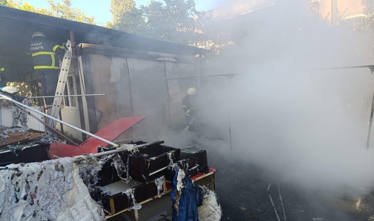 Hatay’da meydana gelen yangında depremzede ailenin yaşadığı konteyner hasar gördü.