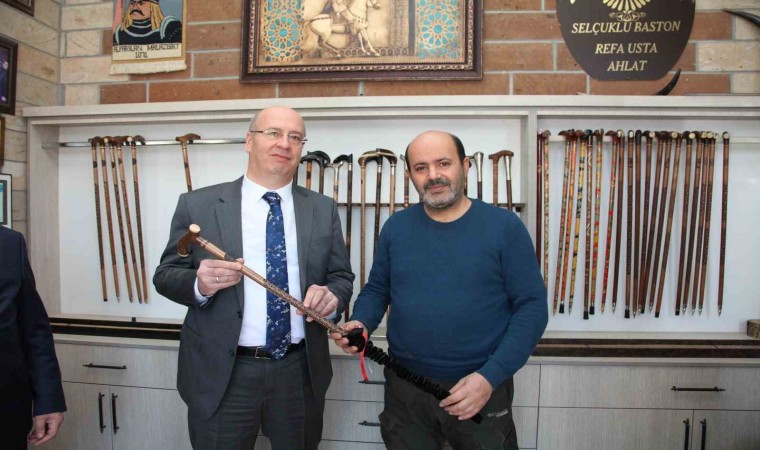Her yıl 26 Şubat-3 Mart tarihlerinde kutlanan Vergi Haftası dolayısıyla Ahlat’ta bulunan baston ustalarını ziyaret eden Defterdar Öztürk, sanat erbapları ile sohbet ederek çalışmaları hakkında bilgi aldı. Üretim atölyelerini de gezerek incelemelerde bulunan Defterdar Öztürk, el sanatkarlarına çalışmalarında başarılar diledi.