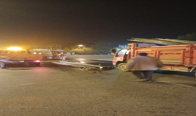 Kaza nedeniyle yolda saçılan demirler toparlandı.
