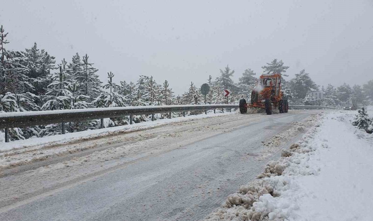 Kar yağışının etkili olduğu Demirci - Simav kara yolunda Karayolları ekiplerince belirli aralıklarla 3 kar küreme iş makinesi ile yol tuzlama ve kar temizleme çalışmaları yapılıyor.