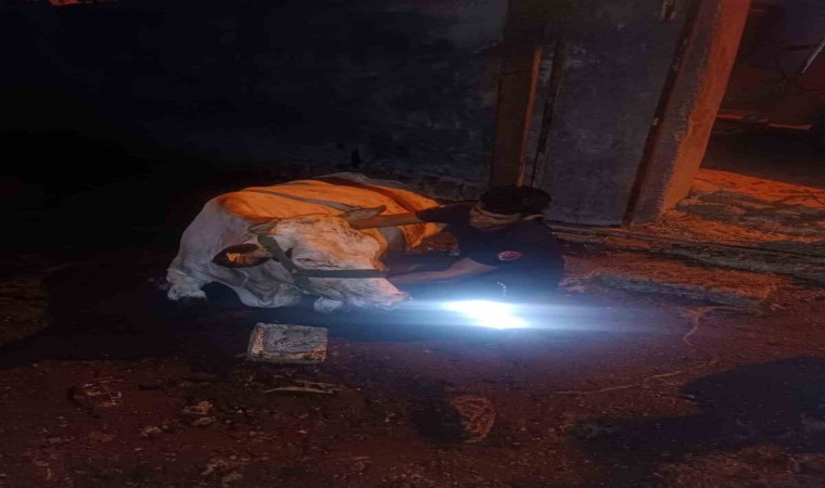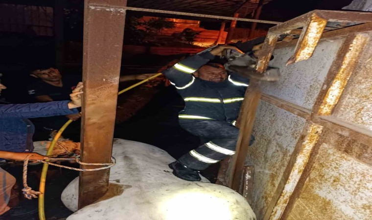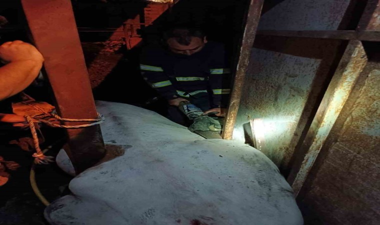 Hatay’da demirlerin arasına sıkışan inek, itfaiye ekiplerinin müdahalesiyle kurtarıldı.