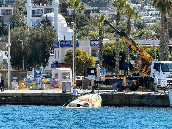 Demirliyken fırtınada batan motoryat, vinçle çıkarıldı