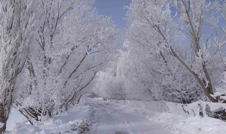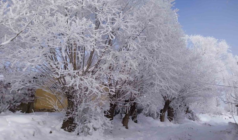 Kış mevsiminin sert geçtiği Bayburt’un Demirözü ilçesinde, soğuk hava sebebiyle kırağıyla kaplanan ağaçlar ve bitkiler güzel görüntü oluşturdu.