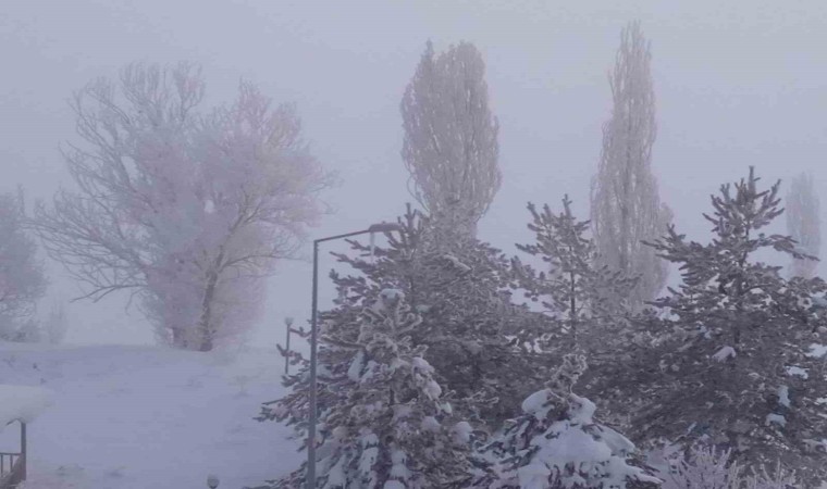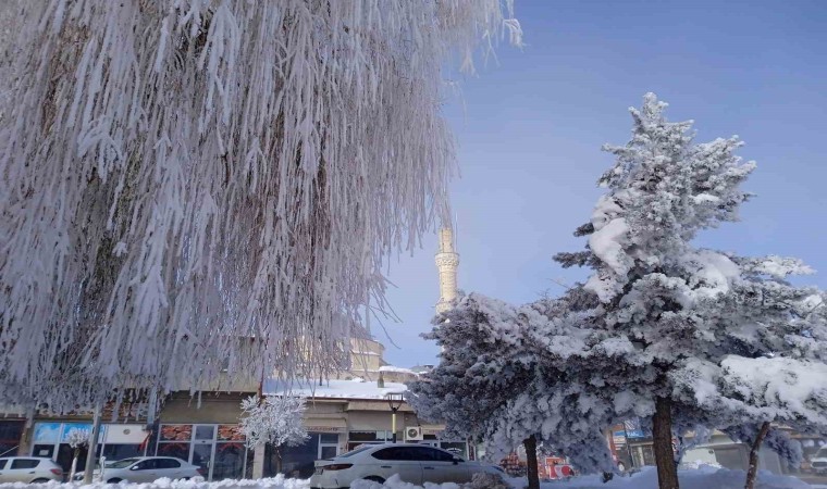 Bayburt’ta dondurucu soğuk hava ve sis nedeniyle kırağı tutan ağaçlar beyaza büründü. Demirözü ilçesinde dondurucu soğuklar ve erken saatlerde etkili olan sisin ardından ağaçlar kırağı tuttu. Kırağı tutan ağaçlar kartpostallık görüntüler oluştururken, ilçede hava sıcaklığı eksi 19 dereceye kadar düştü.