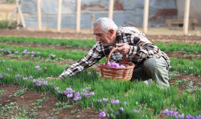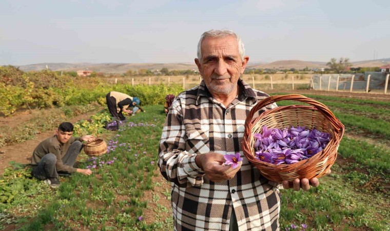 Dünyanın en pahalı baharatı olarak bilinen ve kilogramı 200 bin lira olan safranı deneme amaçlı bahçesine eken ve ardından ticarete çeviren ziraat mühendisi Bayram Çalışkan hasada başladı.