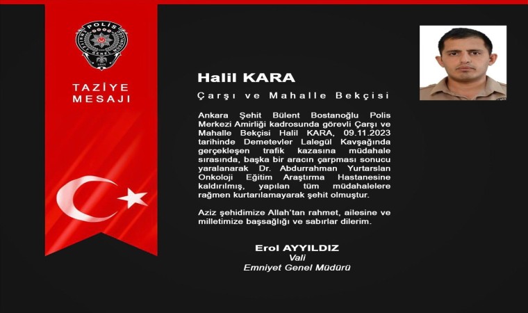 Öte yandan, Emniyet Genel Müdürü Erol Ayyıldız şehit mahalle ve çarşı bekçisi Halil Kara için taziye mesajı yayımladı.