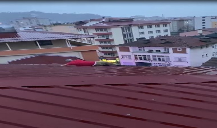 Edinilen bilgiye göre, Sundura Mahallesi’nde akşam saatlerinde meydana geldi. İshak Ş. isimli vatandaş kendi evininde bulunduğu 6 katlı binanın çatısına çıkarak güneş panelini temizlemek istedi. Havanın yağmurlu olması nedeniyle bir anda dengesini kaybeden İshak Ş., kayarak çatının ucunda bulunan oluklara tutundu. Düşmekten son anda kurtulan adamı görenler itfaiye ekiplerine haber verdi. Olay yerine gelen ekipler itfaiye merdiveni yardımıyla çatının ucunda mahsur kalan adamı kurtardı. O anlar ise cep telefonu kamerasına yansıdı.