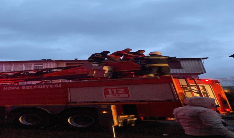 Artvin’in Hopa ilçesinde bir kişi, çıktığı çatıdan dengesini kaybedip düşerken son anda oluklarda asılı kaldı. Korku dolu anlar yaşayan adamın imdadına itfaiye ekipler koştu.