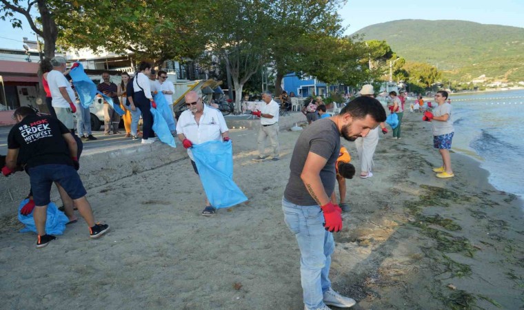 Bölge halkının katılımıyla yapılan kıyı temizliğinde 80 kg çöp toplandı