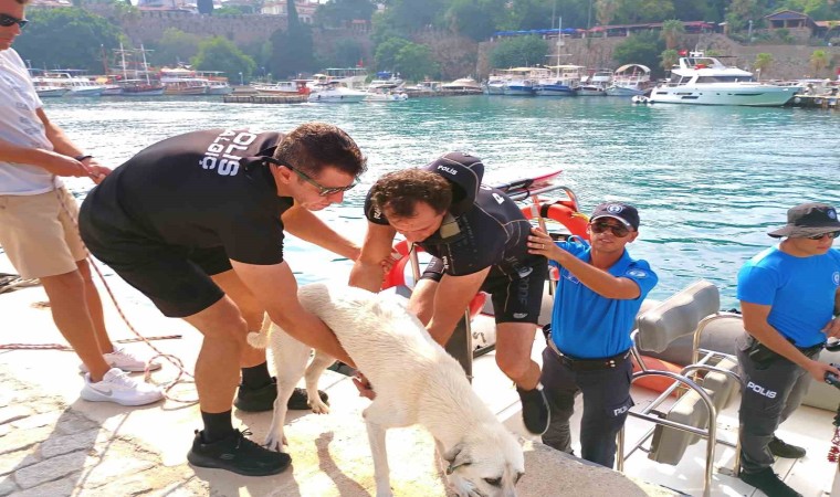 Olay, Antalya’nın Muratpaşa ilçesi Çağlayan Mahallesi’nde Düden Şelalesi’nin denizle buluştuğu noktada meydana geldi. Bir vatandaş sahipsiz bir sokak köpeğinin yaklaşık 30 metrelik falezlerde en alt noktada kayalıklarda mahsur kaldığını görerek durumu 112 Acil Çağrı Merkezi’ne bildirdi. İhbar üzerine bölgeye Antalya İl Emniyet Müdürlüğü Deniz Liman Şube Müdürlüğü’ne bağlı ekipler yönlendirildi. Botla Düden Şelalesi’nin döküldüğü noktaya giden deniz polisi kayalık alanda bulunan sokak köpeğini kısa süreli çalışma sonucu bulunduğu noktadan kurtardı. Vücudunda yaralar olduğu görülen ve botla Yat Limanı’na getirilen köpek, kendisini kurtaran dalgıç polisin yanından bir an olsun ayrılmadı.