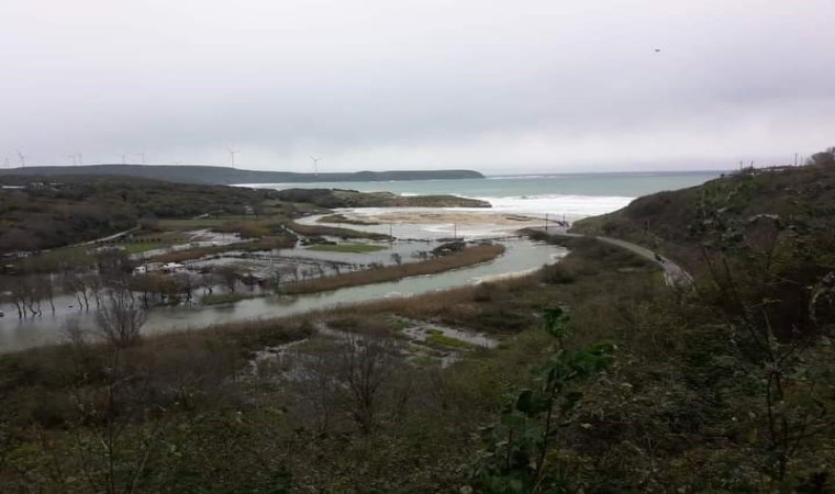 Kırklareli’nin Vize ilçesi Kıyıköy Beldesi’nde kötü hava şartları nedeniyle deniz taşarak dereye karıştı.